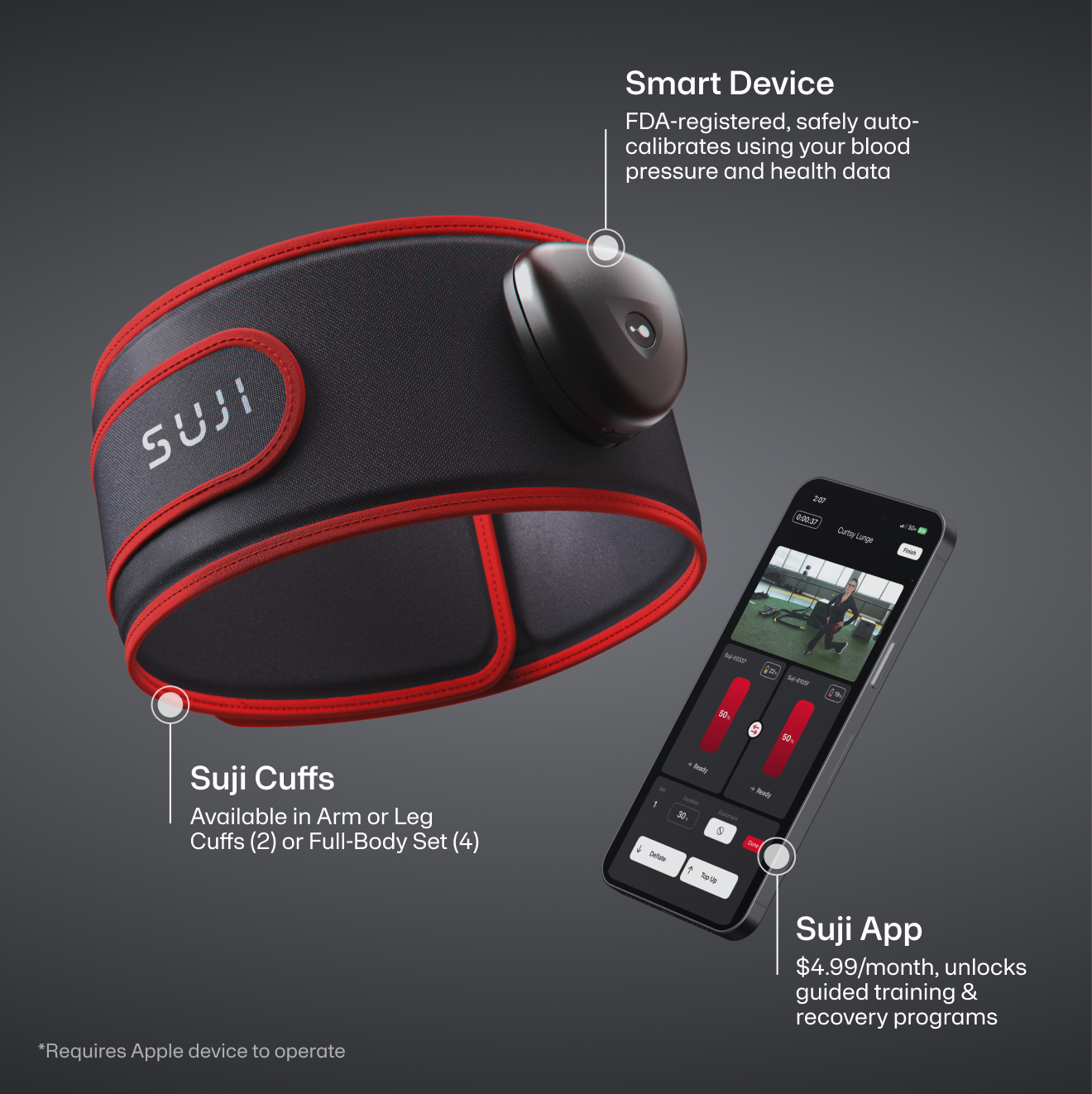 As someone who's been grinding in the gym for over 2 decades—chasing PRs, building muscle, and battling the inevitable plateaus and nagging joint tweaks—I've tried every gadget under the sun promising to supercharge my workouts. Foam rollers, EMS stimulators, even those fancy cryotherapy chambers that cost more than my mortgage. But nothing has felt like an actual cheat code quite like Suji's Blood Flow Restriction (BFR) cuffs. If you're serious about strength gains without wrecking your body, this is the tool that lets you level up smarter, not harder. I've been using the Suji 2.0 Arm/Leg Cuff Set for the past three months, and it's transformed my training routine.